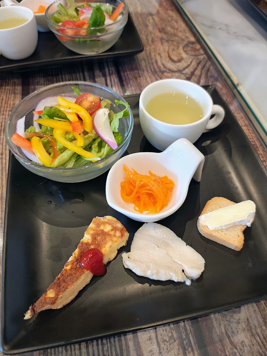 If you're looking for a delightful spot for lunch, consider their Hot Sandwich lunch set, featuring thick omelette and cheese for JP¥1,150, served alongside a fresh salad and a mini vegetable juice, ensuring that every meal at Latte Art Bar Zero is a wholesome experience.